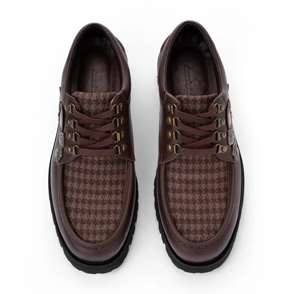 - Houndstooth Pattern: The brown and black houndstooth fabric adds a vintage yet contemporary flair.