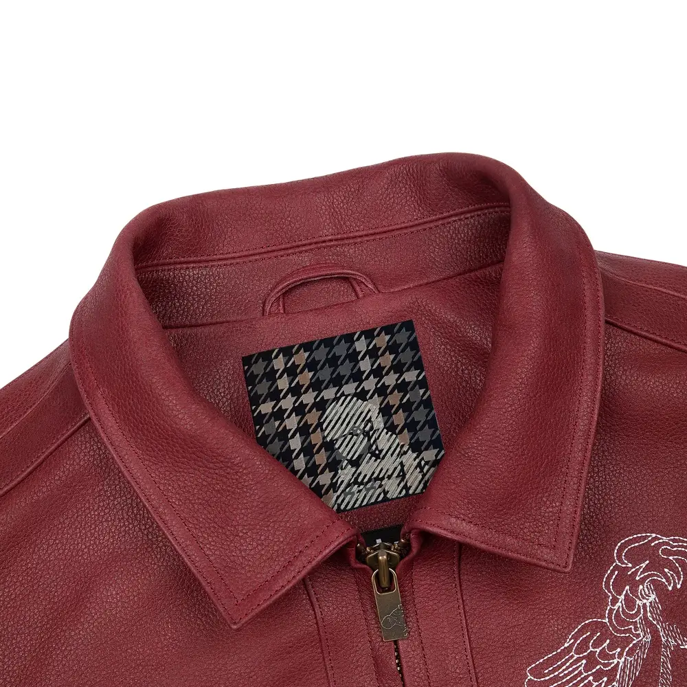 This jacket is made from premium quality leather that offers durability, a smooth feel, and long lasting wear. The rich red color gives it a strong and eye-catching look.