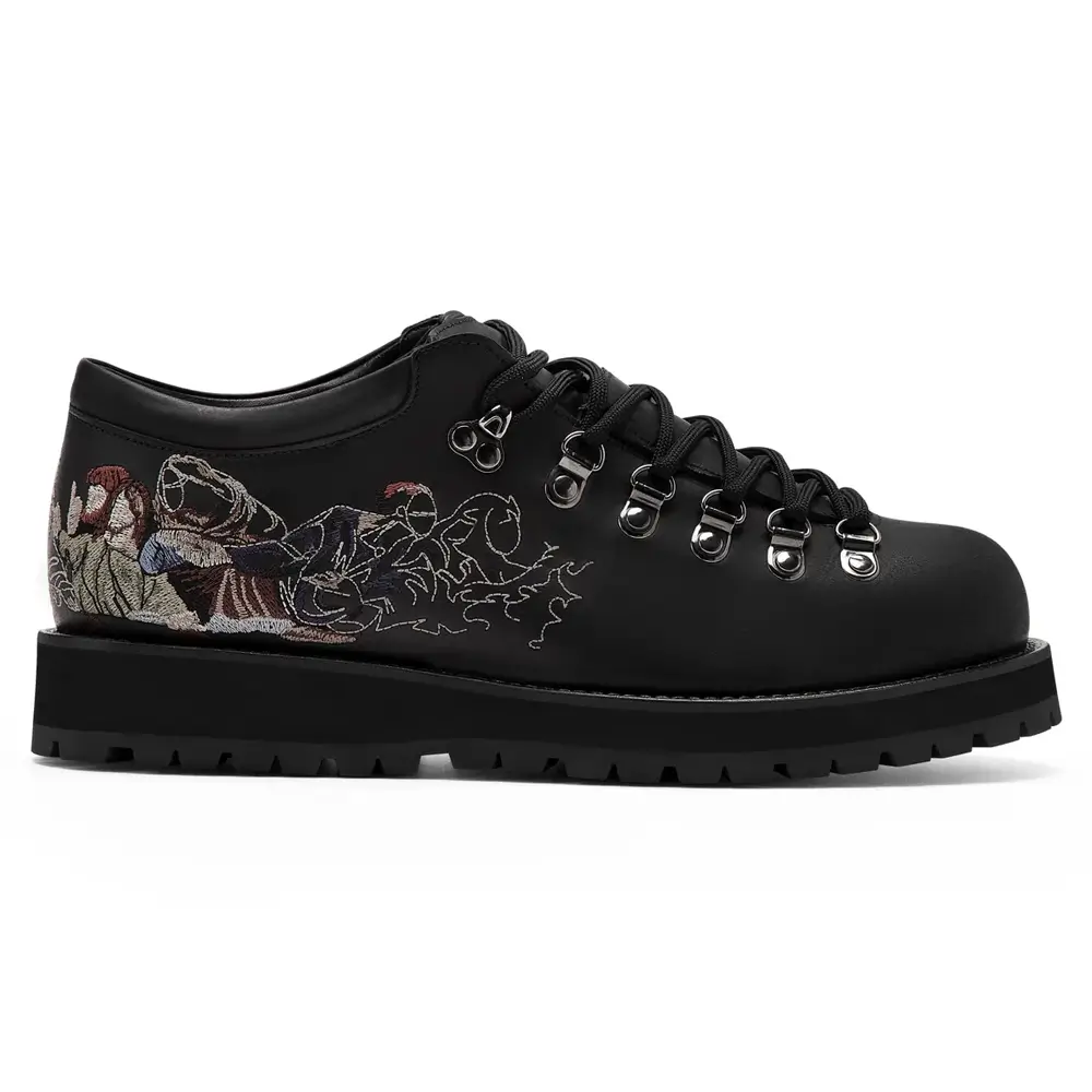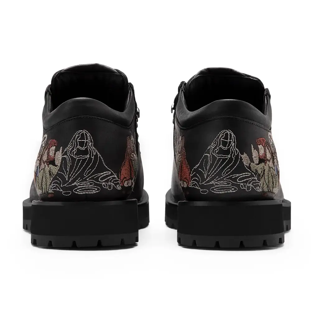 Step into durability and modern style with the Last Supper Work Boots Low Black. Designed for both work and everyday wear, these boots feature a premium leather upper with distinctive embroidered artwork for a bold, street ready look.