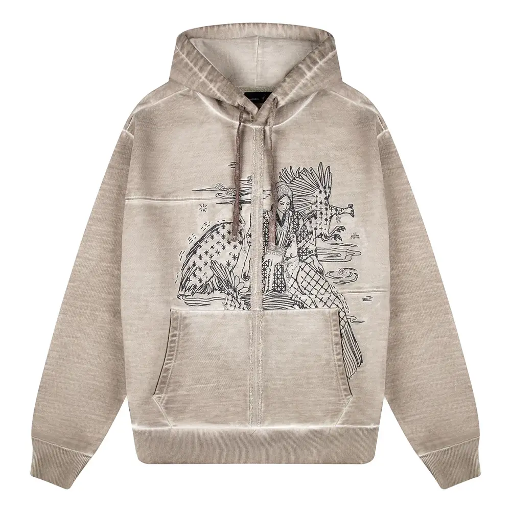 Introducing the Sashiko V2 Hoodie in Light Grey, a stylish blend of traditional craftsmanship and modern design. Featuring intricate Sashiko inspired embroidery, this hoodie showcases beautiful motifs of birds and flowers, meticulously stitched into the fabric for a unique, artistic touch. The relaxed fit offers all day comfort, and the light grey wash gives it a timeless, worn in look that suits any casual setting. Whether you’re out for a laid back day or lounging at home, this hoodie effortlessly combines art, culture, and comfort.