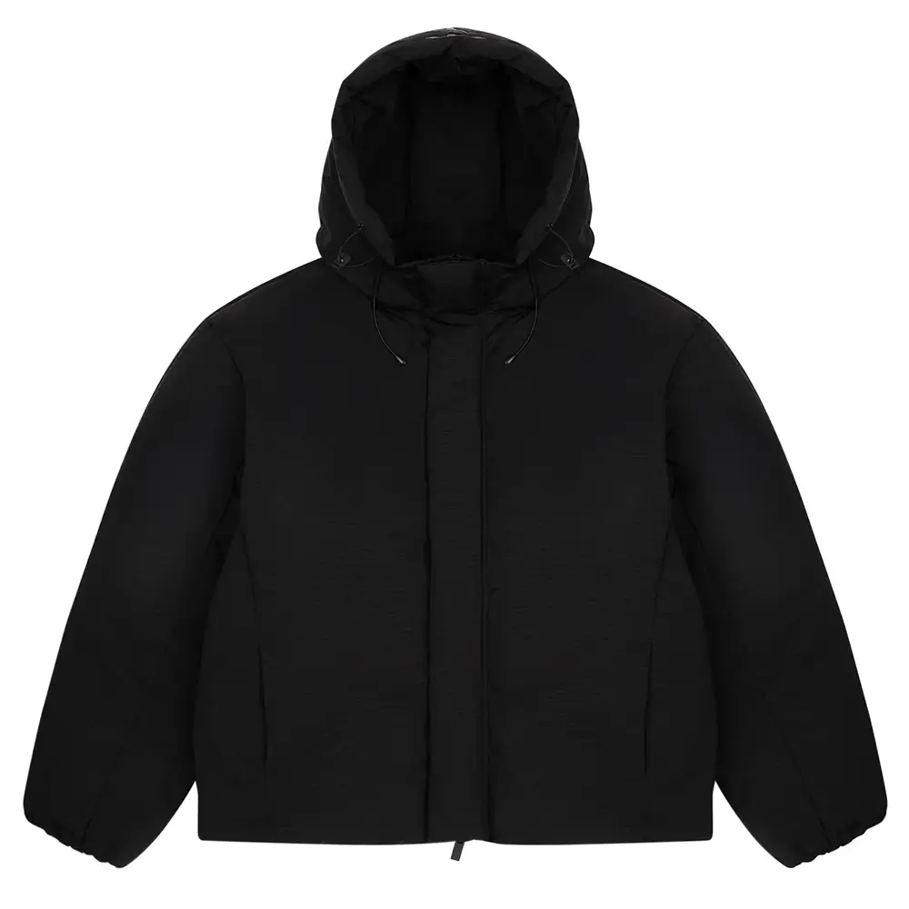 The sleek black design, modern fit, and subtle branding create a clean, versatile look. With a full zip closure, insulated hood, and functional pockets, it’s built for everyday comfort and easy layering.