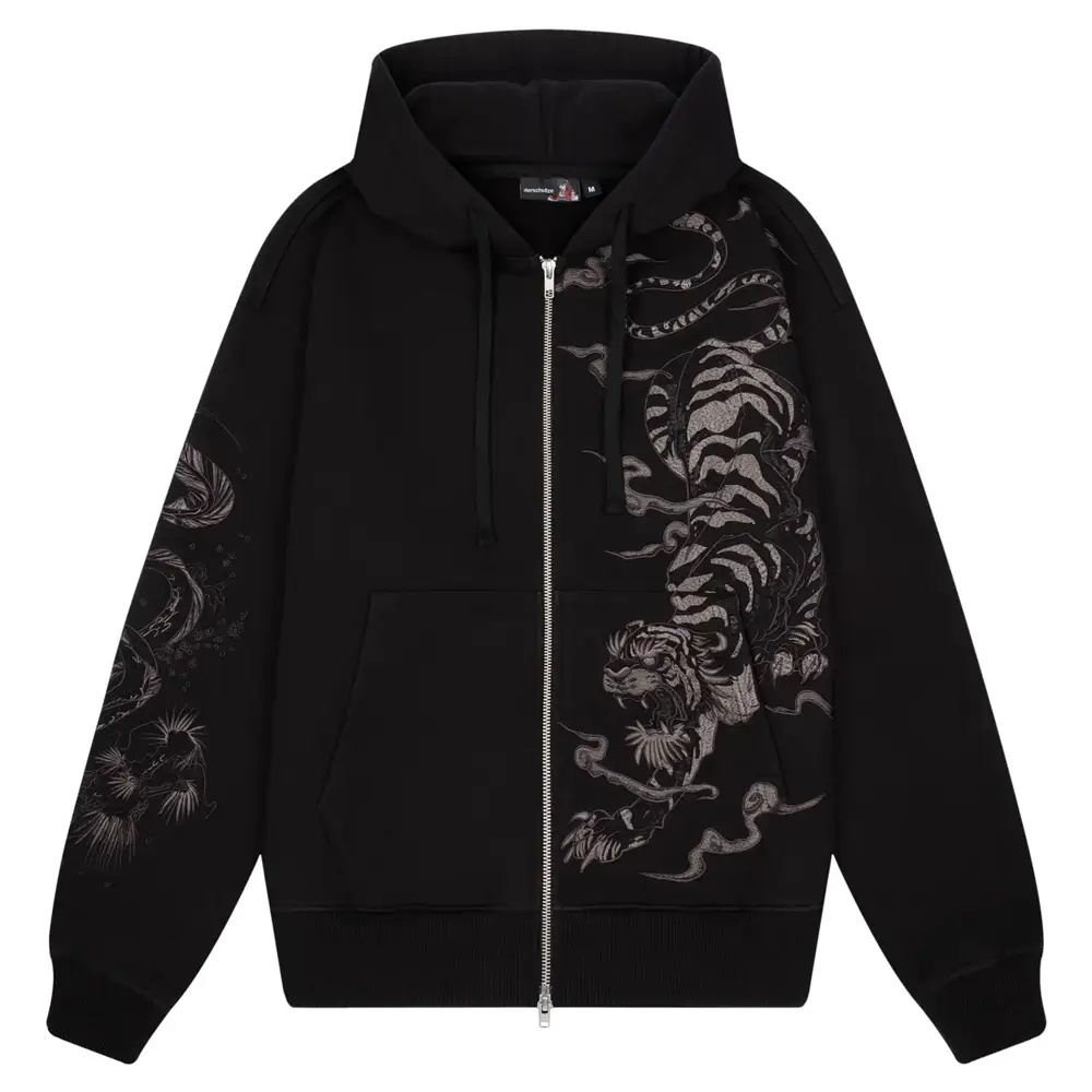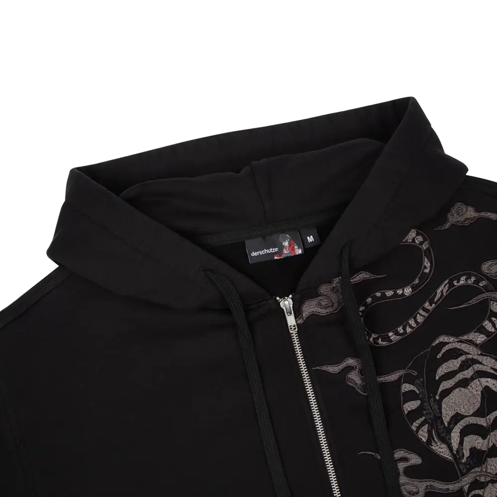 The Yakuza V3 Zip Up Hoodie in Black seamlessly blends street style with everyday comfort, making it a standout addition to any wardrobe. Made from soft, durable fabric, this hoodie features bold tiger and snake graphics on the front, giving it an edgy and distinctive look that captures attention. The detailed design adds a fierce yet stylish element to your outfit, perfect for those who love to make a statement.